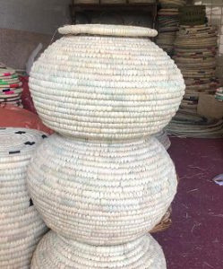 بافته میشود محصولی کاملا طبیعی بدون مواد پلاستیکی میباشد که ظرفی مناسب برای نگهداری برنج و حبوبات میباشد. این محصول با دست بافته شده و کاملا طبیعی میباشد.