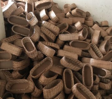 1. انتخاب مواد اولیه: برای تولید سبدهای حصیری، از مواد اولیه با کیفیت و طبیعی استفاده می‌شود. این مواد شامل نی، چوب و دیگر الیاف طبیعی هستند.