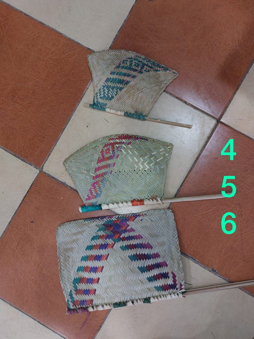 بادبزن حصیری در دو نوع مستطیلی و تبری توسط بافنده های ماهر بافته میشود.