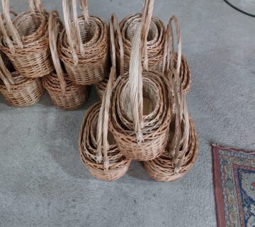 1. سبد گل حصیری ساده: این نوع سبدها معمولاً برای استفاده روزمره و هدیه‌های کوچک طراحی شده‌اند. آن‌ها به راحتی قابل حمل و جابجایی هستند.